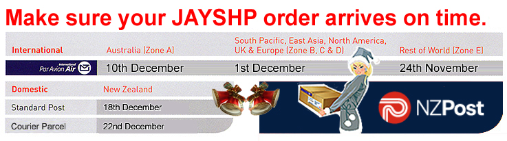 Christmas is coming and NZ Post have issued a guide to help ensure your post will arrive in time. The chart below has been edited by us to include only relevant postal information when ordering from us. We hope this helps.